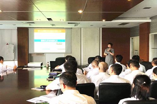 受浙江精益培训机构邀请,为嘉兴某企业销售员工和管理层做商务礼仪与沟通礼仪的